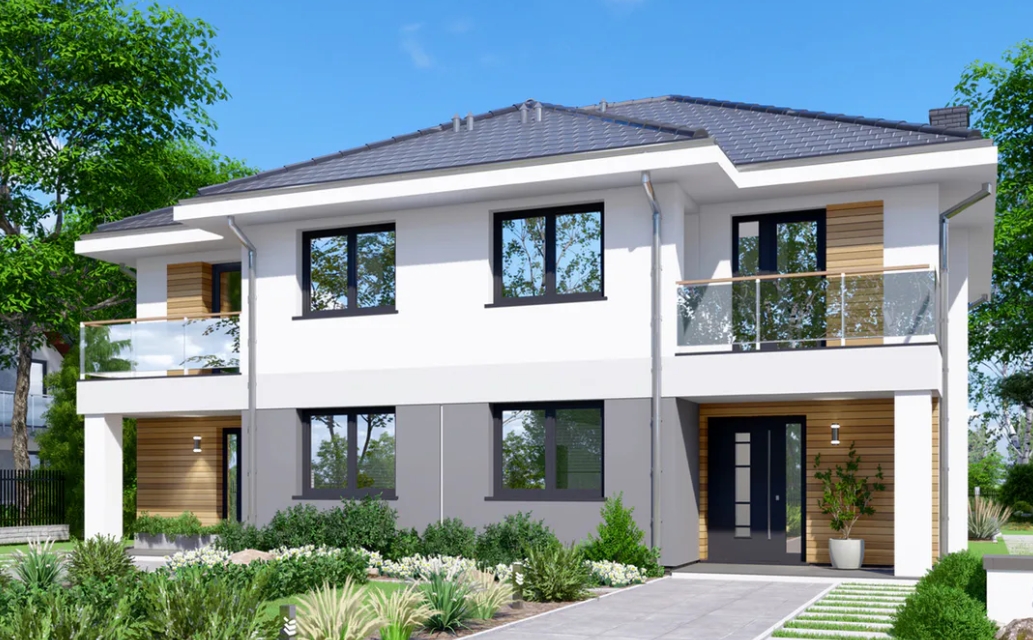 Nienhaus Immobilien, zeigt Ihnen einen Weg ins eigene Traumhaus, denn die Preise sind konkurrenzlos und garantieren hohe Bauqualität und Komfort. Unsere Häuser punkten mit moderner, intelligenter Raumaufteilung, hervorragender Qualität und kompletten Materialpaketen. Wir bieten unseren Kunden Freiheit statt Miete. Gerne erstellen wir ein unverbindliches Hauskonzept, dass ganz auf Ihre Bedürfnisse und auf Ihr Budget zugeschnitten ist. Mit der Festpreisgarantie über 12 Monate von Nienhaus Immobilien erleben Sie während der Bauphase keine bösen Überraschungen. Dieser Architektenentwurf ist ein Planungsvorschlag und dient der Inspiration und Orientierung. Grundrisse, Architektur-Extras, werden individuell auf Ihre Wünsche und Bedürfnisse angepasst, hieraus ergibt sich dann Ihr Preis. Die genaue Art der Bebauung und Ausrichtung des Grundstückes wird im Zuge der Architekten Planung mit Ihnen und den Bauplänen gemeinsam festgelegt. Natürlich bieten wir in unseren Gesprächen auch immer eine individuelle und kostenlose Finanzierungsberatung an, wo mit allen Kosten und Einnahmen Ihre individuelle Wohlfühlrate errechnet wird. Abbildungen können aufpreispflichtige Extras enthalten. Alle Preisangaben gültig für Deutschland inklusive 19% MwSt.(Bundeslandabhängig). Preis enthält kein Grundstück, Garage, PV-Anlage, Küche, Hausanschlusse, Bauneben- und Kaufnebenkosten.