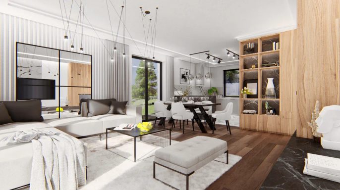 Nienhaus Immobilien, zeigt Ihnen einen Weg ins eigene Traumhaus, denn die Preise sind konkurrenzlos und garantieren hohe Bauqualität und Komfort. Unsere Häuser punkten mit moderner, intelligenter Raumaufteilung, hervorragender Qualität und kompletten Materialpaketen. Wir bieten unseren Kunden Freiheit statt Miete. Gerne erstellen wir ein unverbindliches Hauskonzept, dass ganz auf Ihre Bedürfnisse und auf Ihr Budget zugeschnitten ist. Mit der Festpreisgarantie über 12 Monate von Nienhaus Immobilien erleben Sie während der Bauphase keine bösen Überraschungen. Dieser Architektenentwurf ist ein Planungsvorschlag und dient der Inspiration und Orientierung. Grundrisse, Architektur-Extras, werden individuell auf Ihre Wünsche und Bedürfnisse angepasst, hieraus ergibt sich dann Ihr Preis. Die genaue Art der Bebauung und Ausrichtung des Grundstückes wird im Zuge der Architekten Planung mit Ihnen und den Bauplänen gemeinsam festgelegt. Natürlich bieten wir in unseren Gesprächen auch immer eine individuelle und kostenlose Finanzierungsberatung an, wo mit allen Kosten und Einnahmen Ihre individuelle Wohlfühlrate errechnet wird. Abbildungen können aufpreispflichtige Extras enthalten. Alle Preisangaben gültig für Deutschland inklusive 19% MwSt. (Bundeslandabhängig). Preis enthält kein Grundstück, Garage, PV-Anlage, Küche, Hausanschlusse, Bauneben- und Kaufnebenkosten.